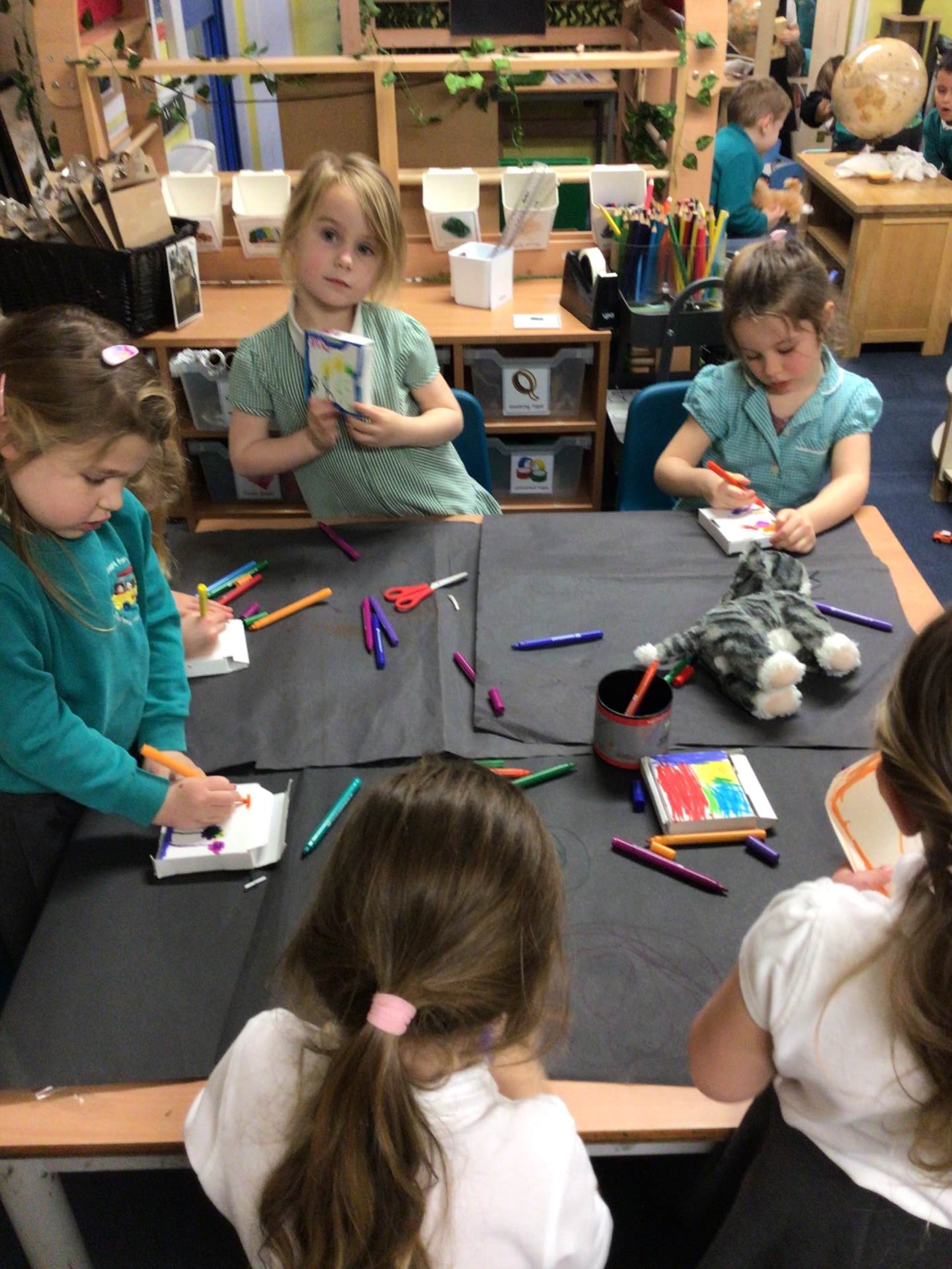 - colouring with pencils and pens