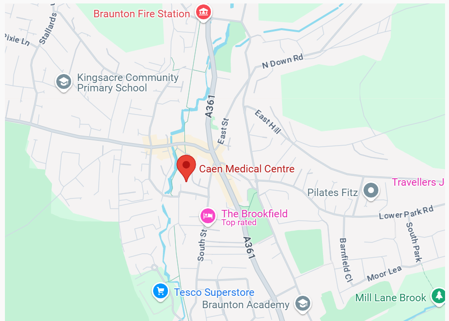 The doctor's office in Braunton is called Caen Medical Centre. You can pop in to register with them, or use their website here.
